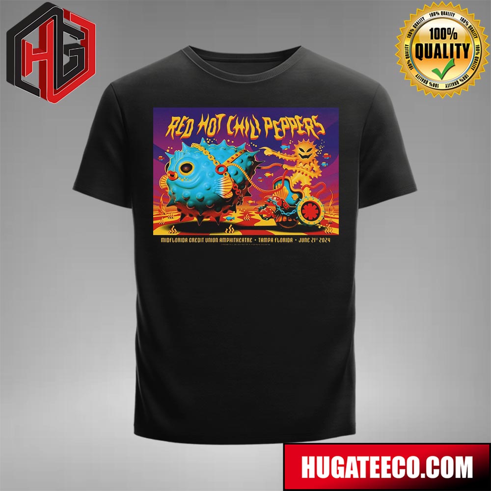 Red Hot Chili Peppers Screen Printed Concert Poster Midflorida Credit Union Amphitheatre Tampa Florida June 21st 2024 T-shirt