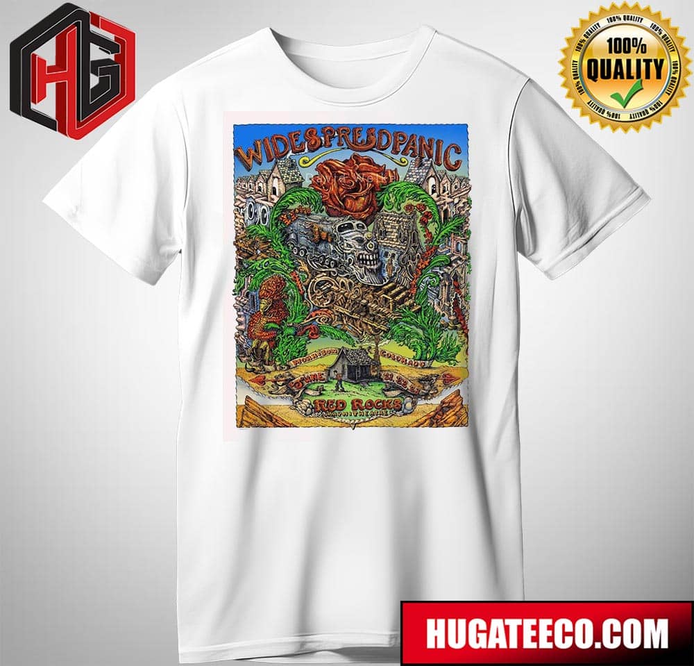 Red Rocks Merch Poster For Widespread Panic On June 21st 22nd 23rd 2024 At Red Rocks Amphitheatre Morrison Colorado T-shirt