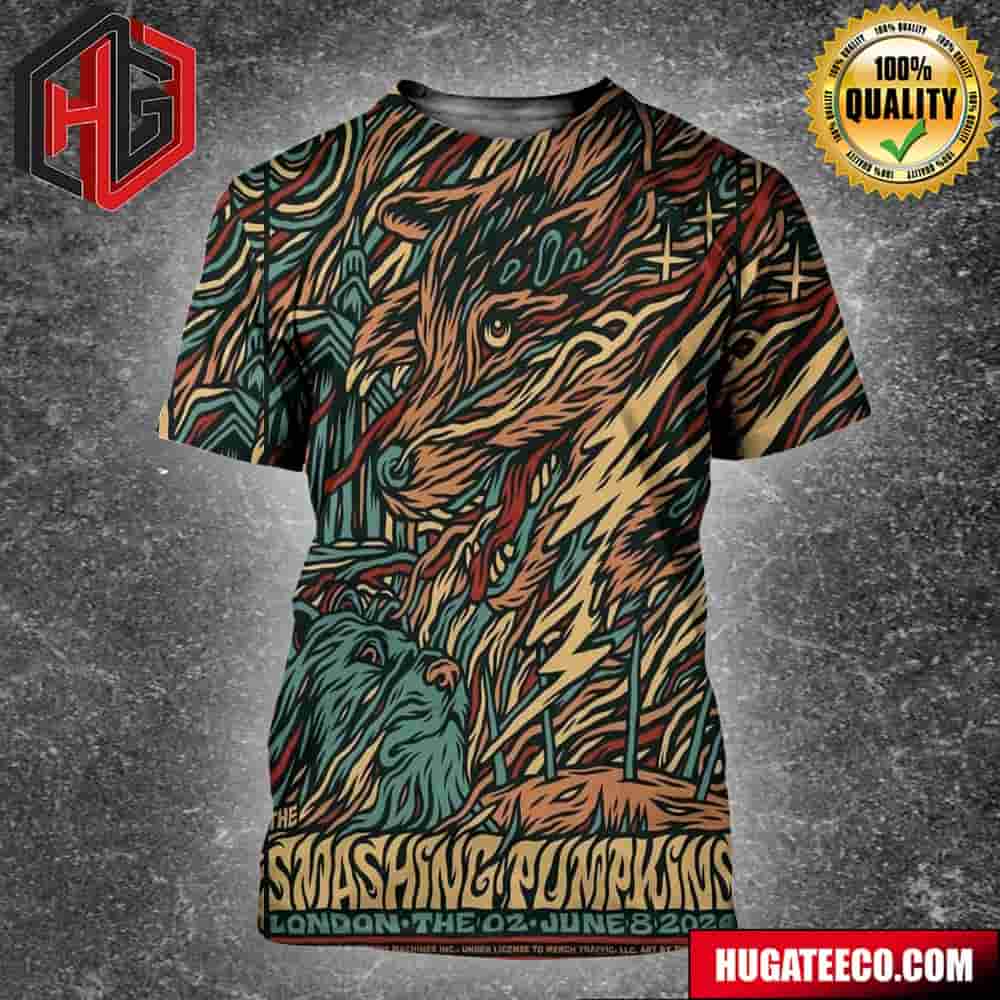Screen Printed Concert Poster For The Smashing Pumpkins Show At June 8 2024 In London At The 02 London All Over Print Shirt