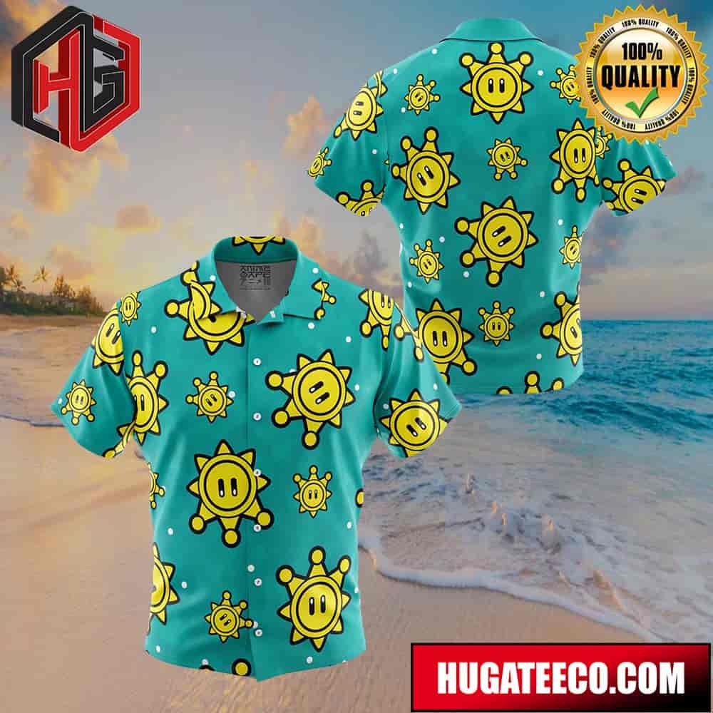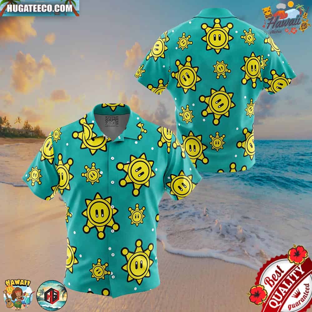 Shine Sprite Pattern Super Mario Button Up Animeape Hawaiian Shirt