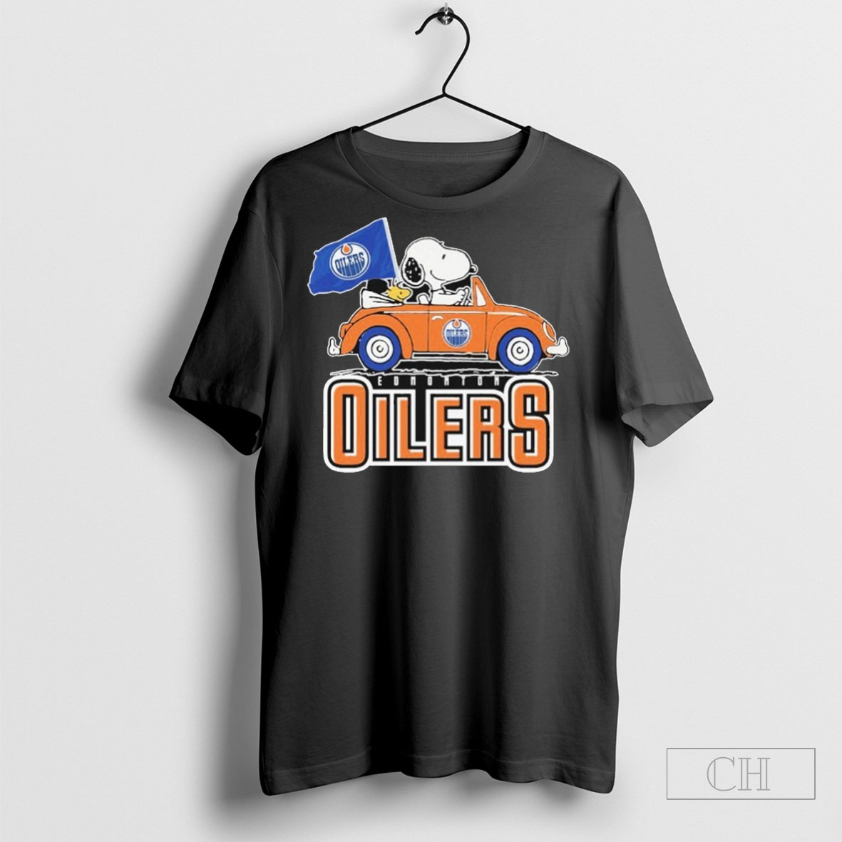 Snoopy And Woodstock Driving Car Fan Edmonton Oilers T Shirt