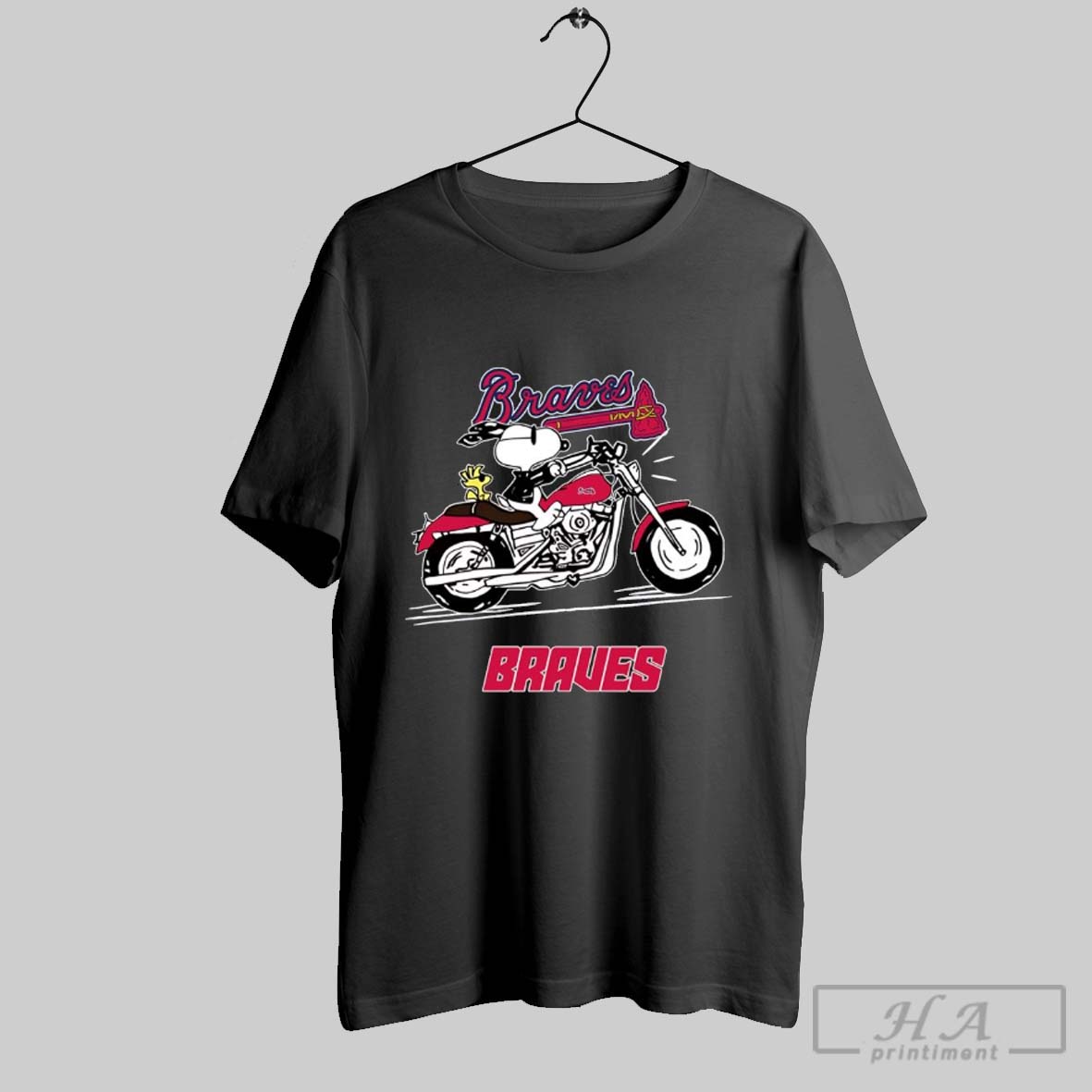 Snoopy And Woodstock Driving Motorbike Atlanta Braves Shirt
