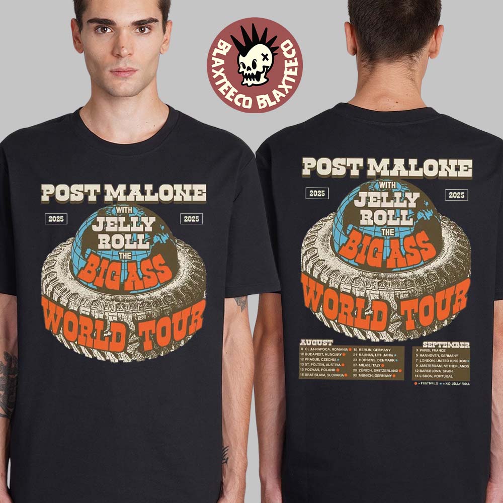 The Big Ass World Tour 2025 Post Malone With Jelly Roll Merch European And Uk Tour Dates List On August And September 2025 Two Sided Unisex T-shirt