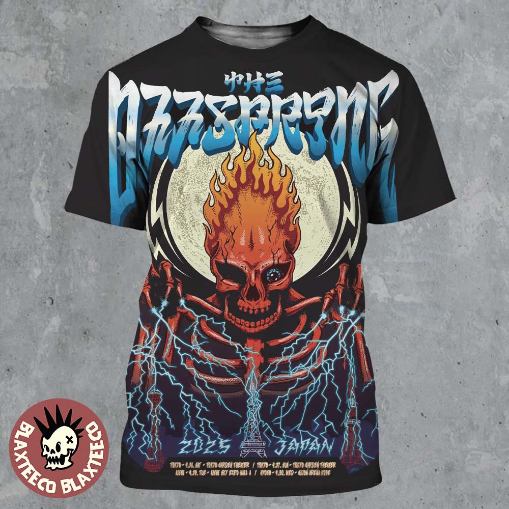 The Offspring Japan Tour 2025 Poster Skeleton Flame And Lightning Artwork With Tour Dates All Over Print Shirt