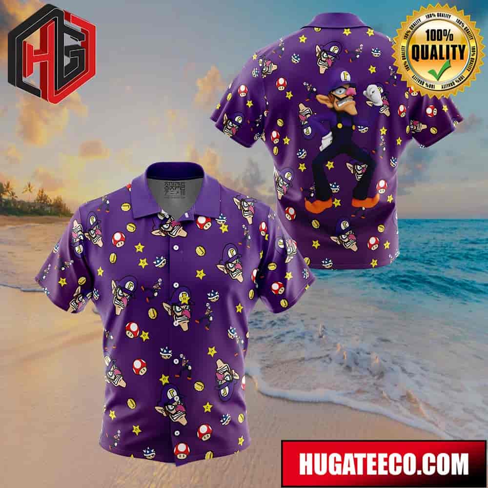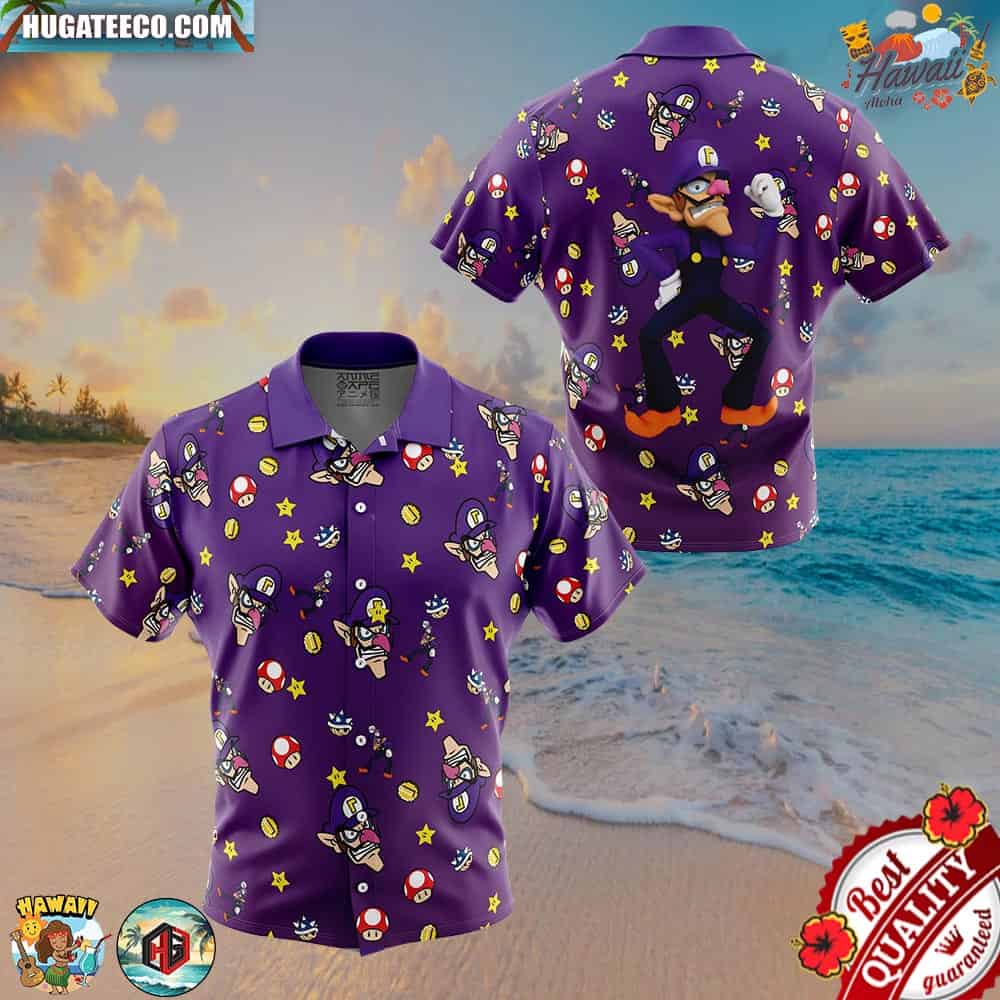 Waluigi Pattern Super Mario Button Up Animeape Hawaiian Shirt
