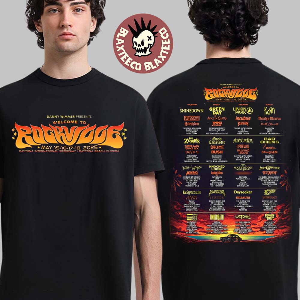 Welcome To Rockville 2025 Lineup In Daytona Beach Florida At Daytona International Speedway On May 15 16 17 18 2025 Two Sides Unisex T-shirt