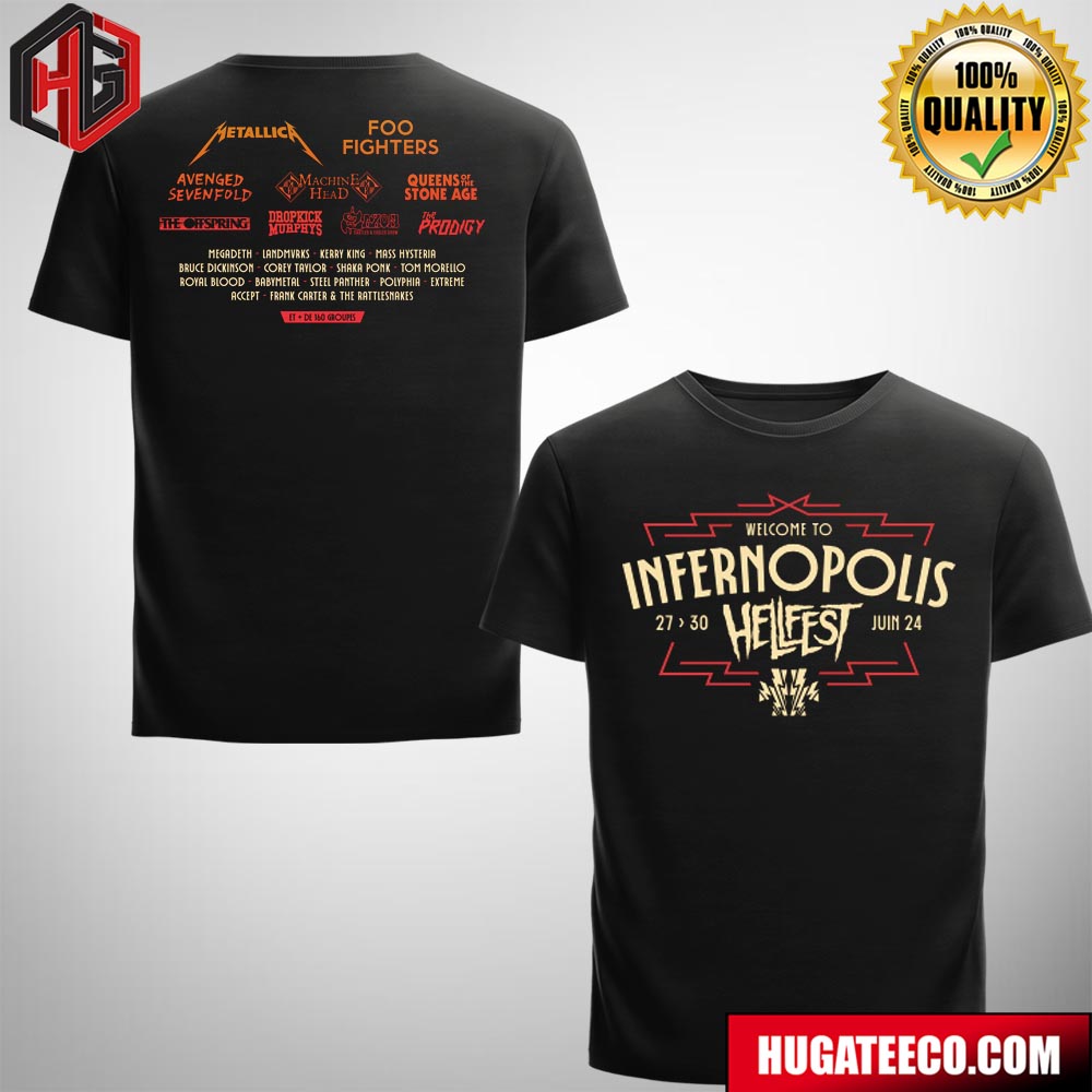 Welcome To Infernopolis Hellfest June 27-30 2024 With Metallica X Foo Fighters X Queens Of The Stone Age And Many More Bands Two Sides T-shirt