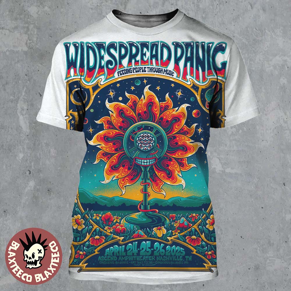 Widespread Panic And Conscious Alliance Feeding People Through Music Concert Poster In Nashville Tennessee At Ascend Amphitheater On April 24 25 26 2025 Flame Sun Flower Artwork 3d Shirt