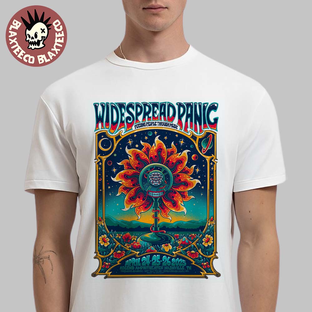 Widespread Panic And Conscious Alliance Feeding People Through Music Concert Poster In Nashville Tennessee At Ascend Amphitheater On April 24 25 26 2025 Flame Sun Flower Artwork Classic T-shirt