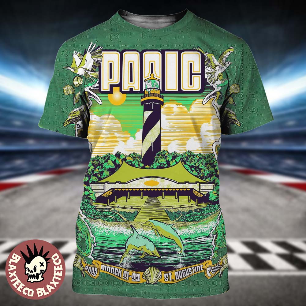 Widespread Panic Poster For Show In St Augustine Florida On March 21-23 2025 The Lighthouse And Dolphins Artwork All Over Print Shirt