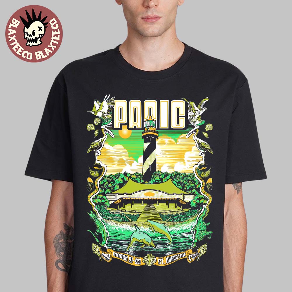 Widespread Panic Poster For Show In St Augustine Florida On March 21-23 2025 The Lighthouse And Dolphins Artwork Unisex T-shirt