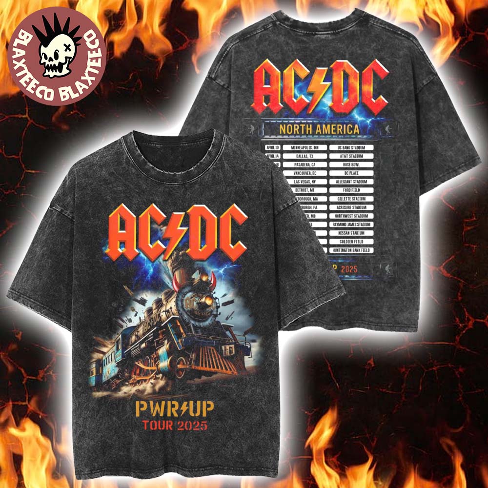 Acdc Rock N Roll Train Pwr Up Tour North America 2025 Vintage Washed T-shirt