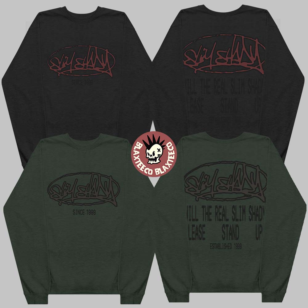 Eminem The Marshall Mathers Lp 25th Anniversary Will The Slim Shady Please Stand Up Black And Green Crewneck Sweater