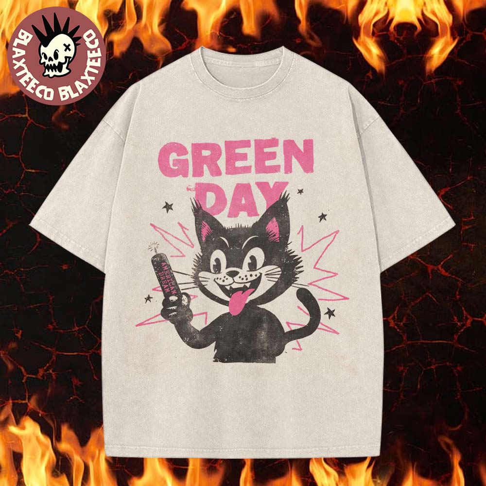 Green Day Savior Deluxe 2025 Cat Dynamite Retro Vibe Washed T-shirt