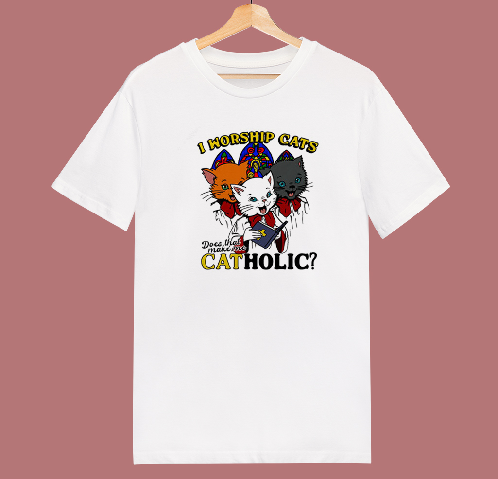 I Worship Cats Funny T Shirt Style