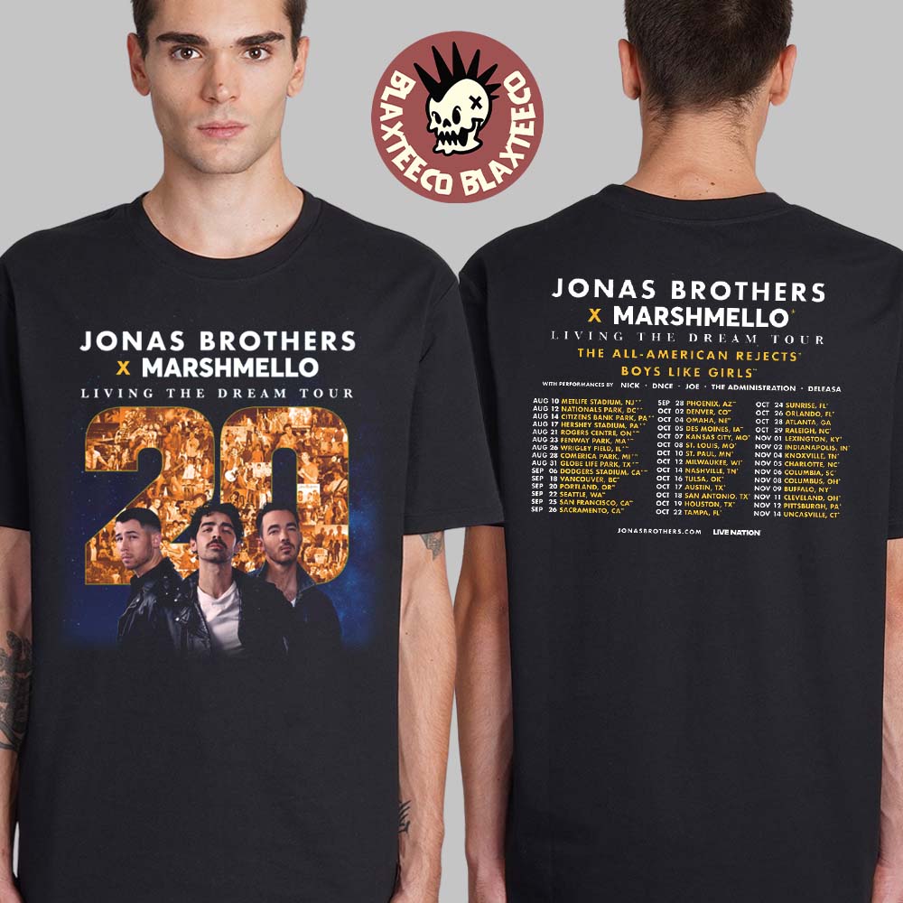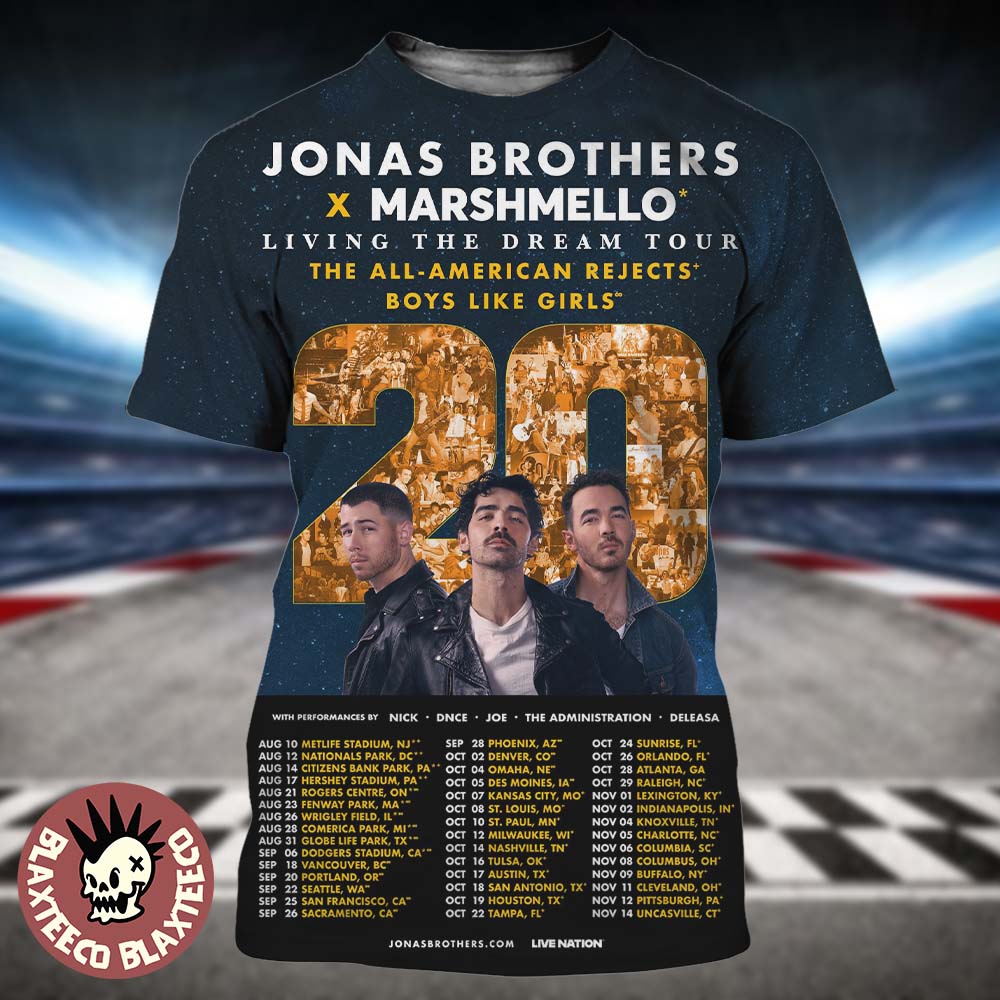 Jonas 20 Jonas Brothers X Marshmello Living The Dream Tour The All American Rejects Boys Like Girls 2025 Celebrating 20 Years Tour Dates All Over Print Shirt