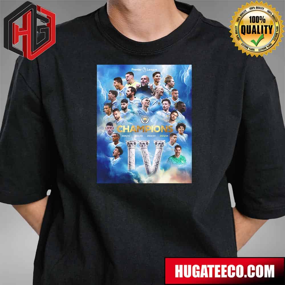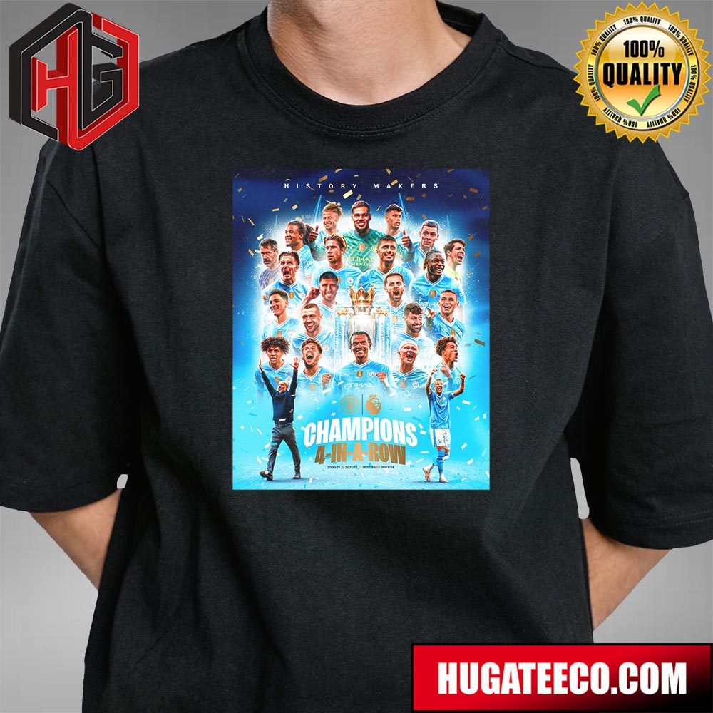 Manchester City Is Premier League Champions History Makers 4-in-a-row 2020-21 2021-2022 2022-23 2023-2024 T-shirt