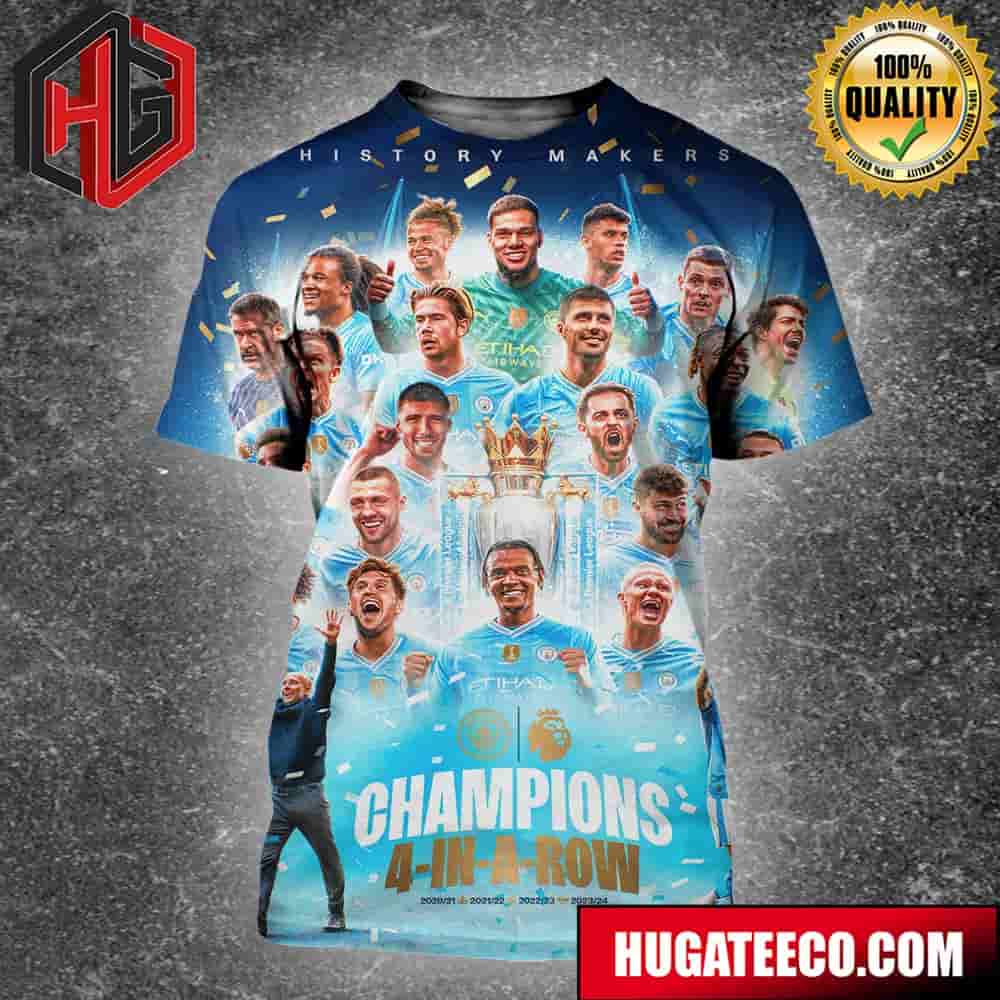Manchester City Is Premier League Champions History Makers 4-in-a-row 2020-21 2021-2022 2022-23 2023-2024 All Over Print Shirt