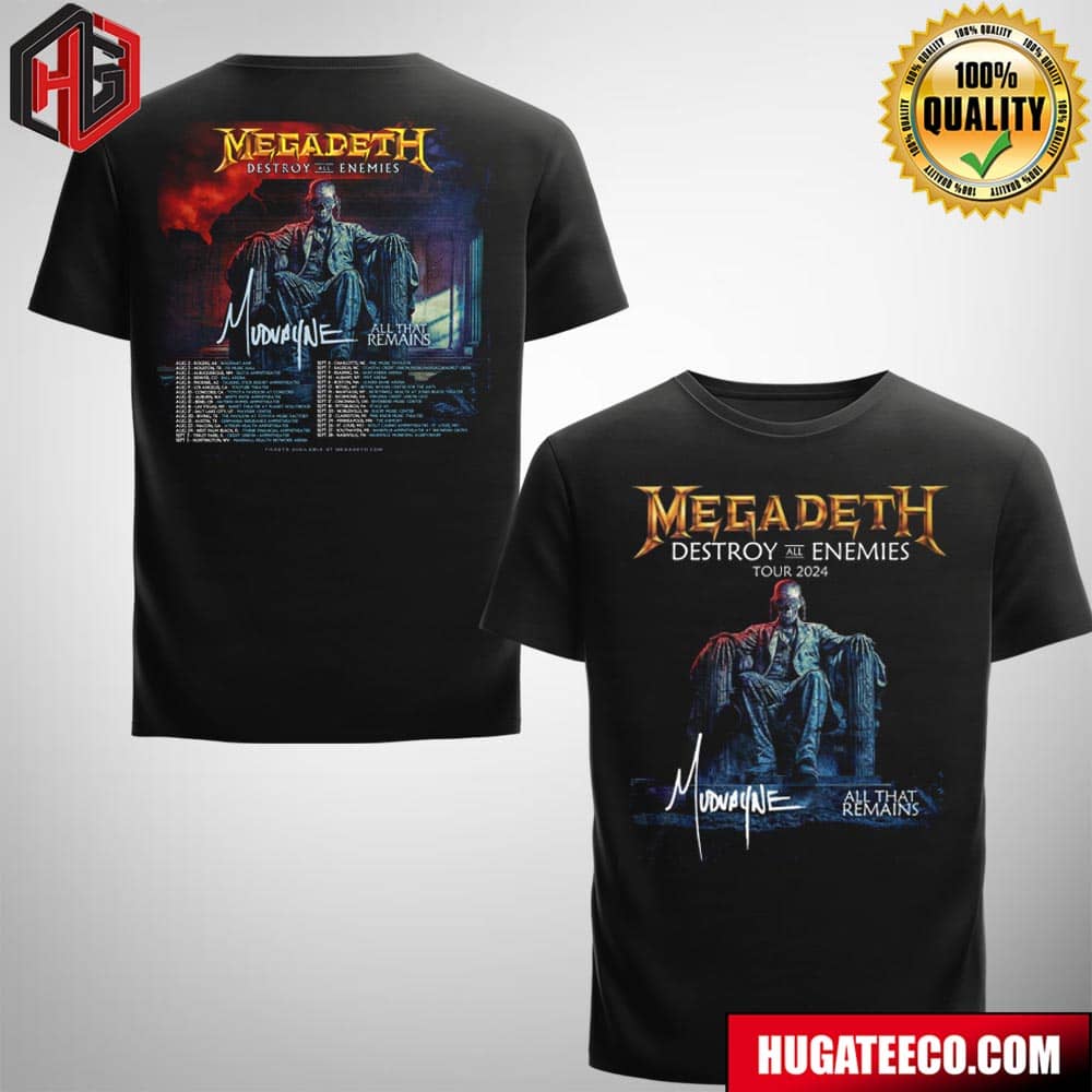 Megadeth Destroy All Enemies Tour 2024 With Mudvayne All That Reamains On Thursday August 15 Los Angeles Ca Two Sides Fan Gift Merchandise T-shirt