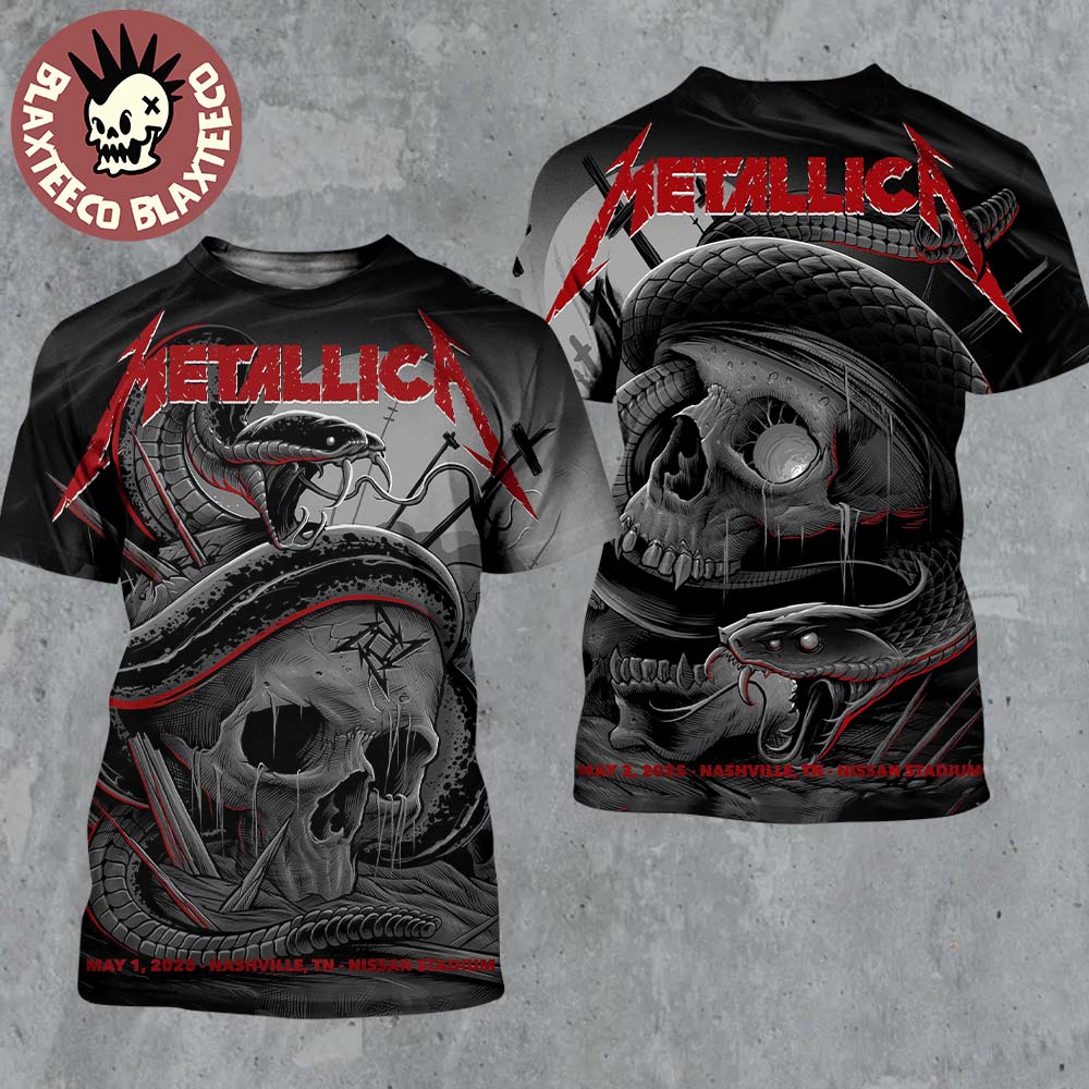 Metallica M72 Nashville 2025 Night 1 And 2 Venue Combined Posters At Nissan Stadium Nashville Tennessee On May 1 And 3 2025 North American Tour Two Sided All Over Print Shirt