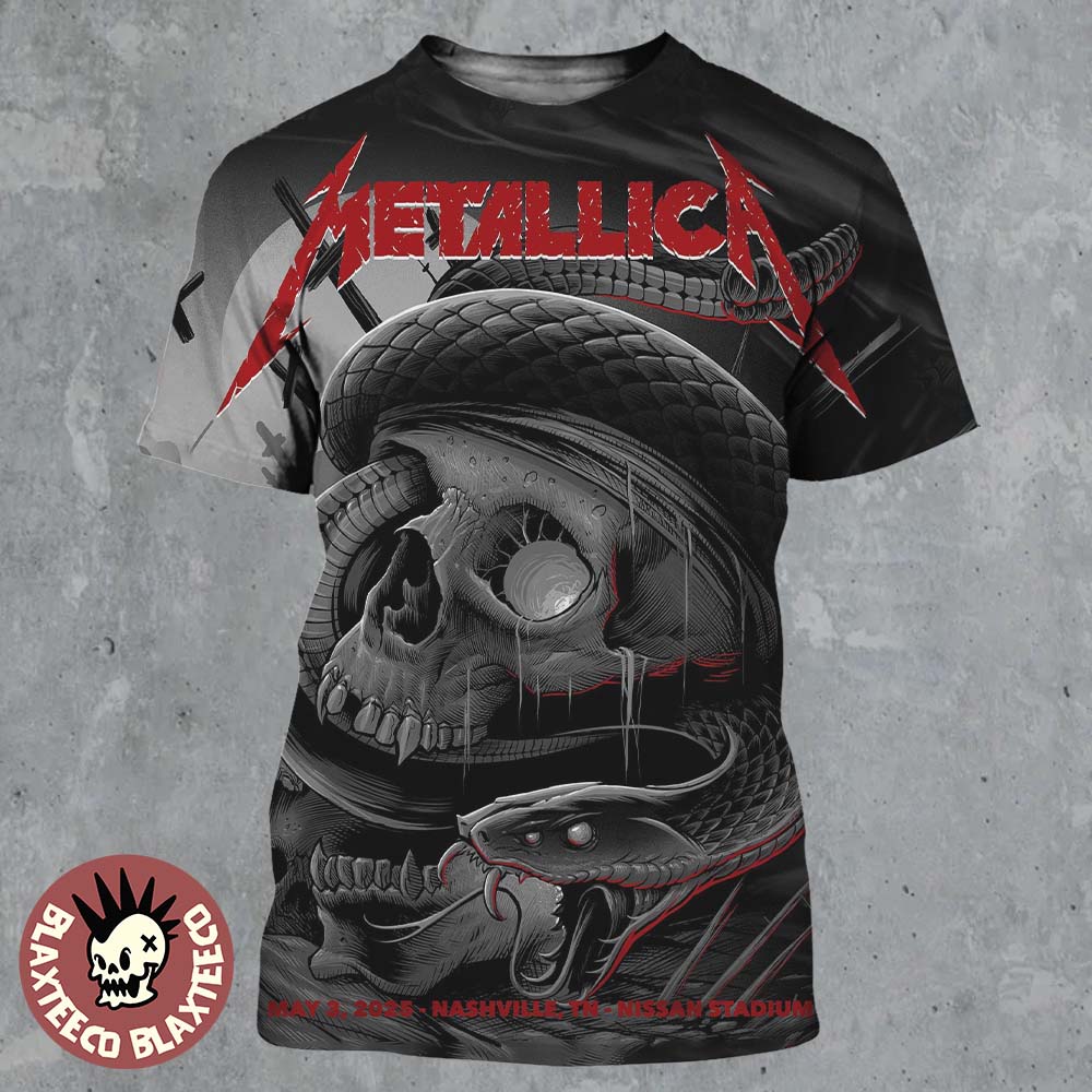 Metallica M72 Nashville Tennessee Night 1 Venue Poster At Nissan Stadium On May 1 2025 Met On Tour Snake And Skull Artwork All Over Print Shirt