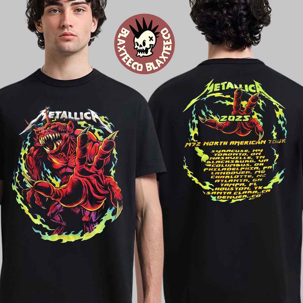 Metallica M72 North American Tour 2025 Tour Dates Red Demon Merch Two Sided Unisex T-shirt