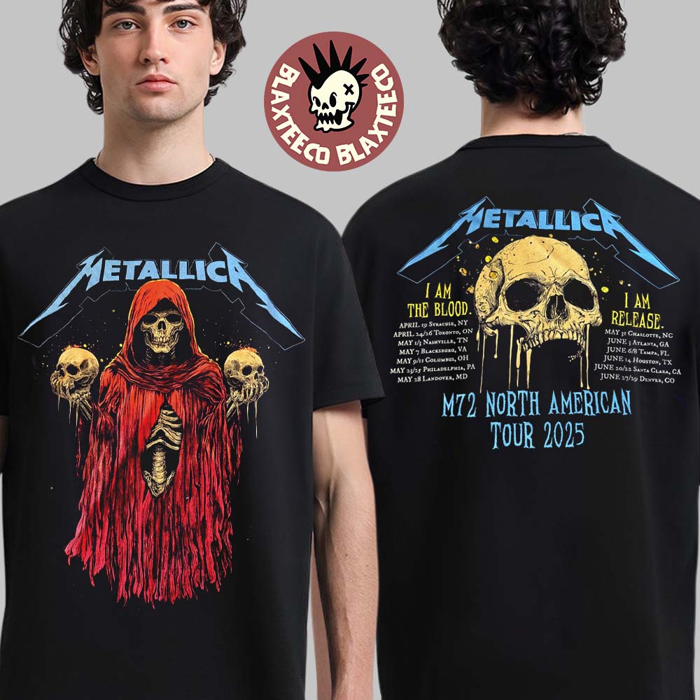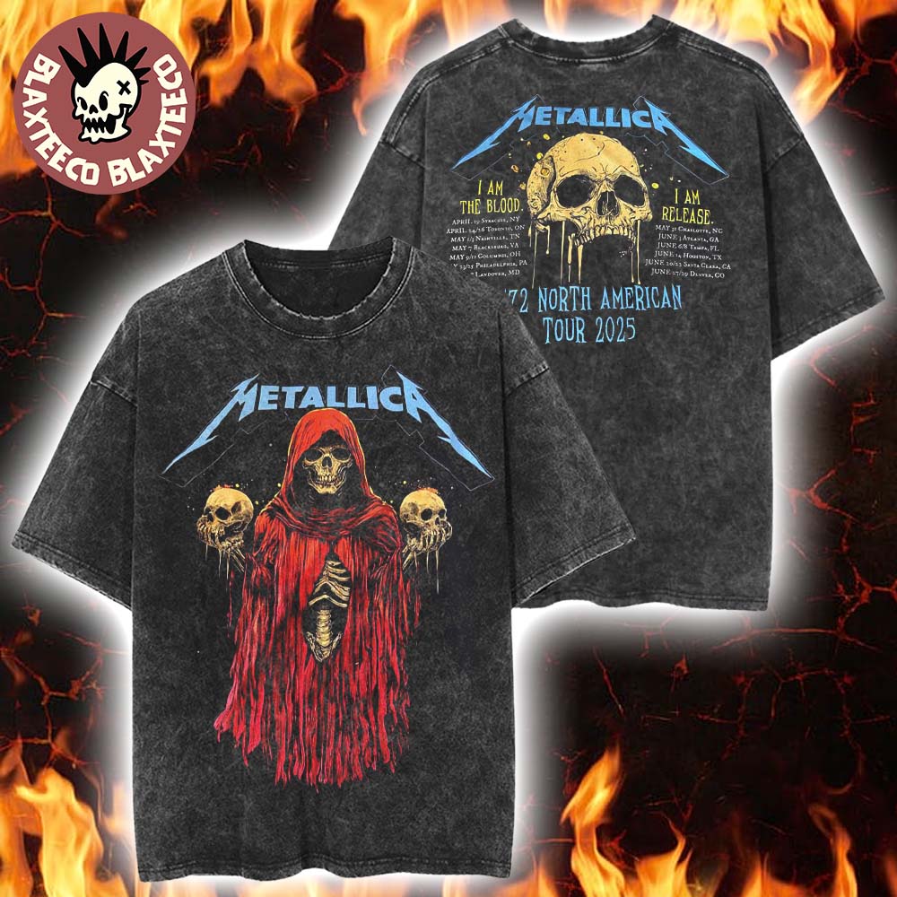 Metallica M72 North American Tour 2025 Tour Dates Skeleton Witch I Am The Blood I Am Release Two Sided Print T-shirt
