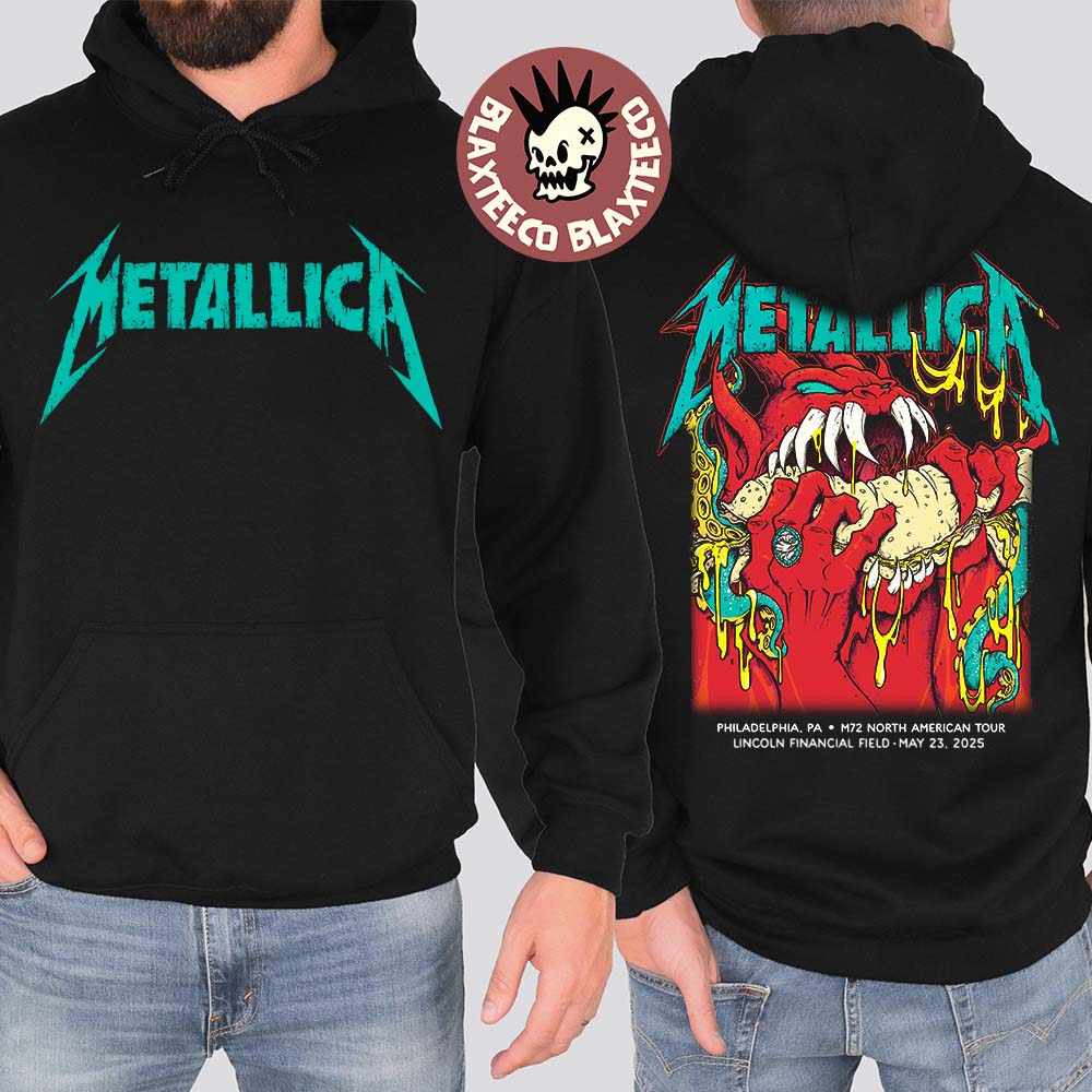 Metallica M72 Philly 2025 Night 1 Venue Hoodie In Philadelphia Pennsylvania At Lincoln Financial Field On May 23 2025 Red Demon Art Two Sided Unisex Hoodie