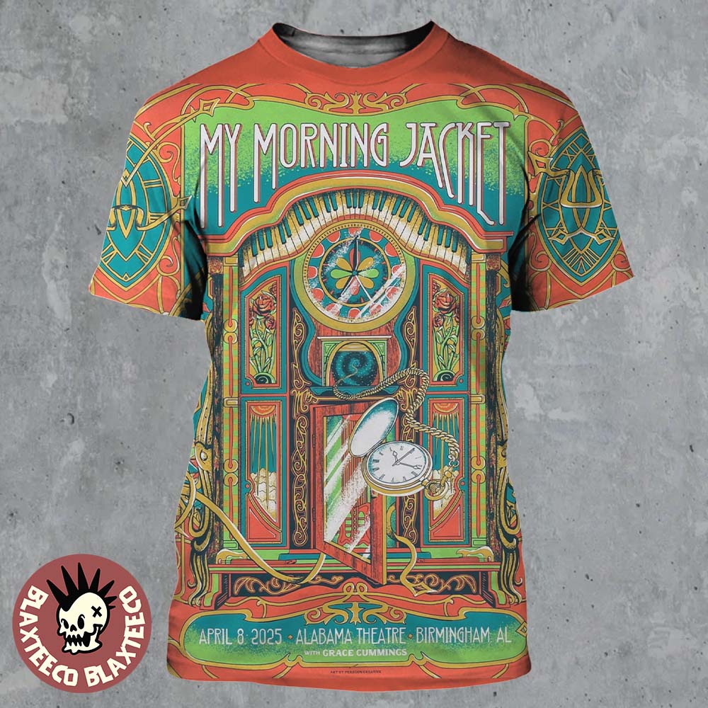 My Morning Jacket Poster For Show At Alabama Theatre In Birmingham Alabama On April 8 2025 The Clock Artwork All Over Print Shirt