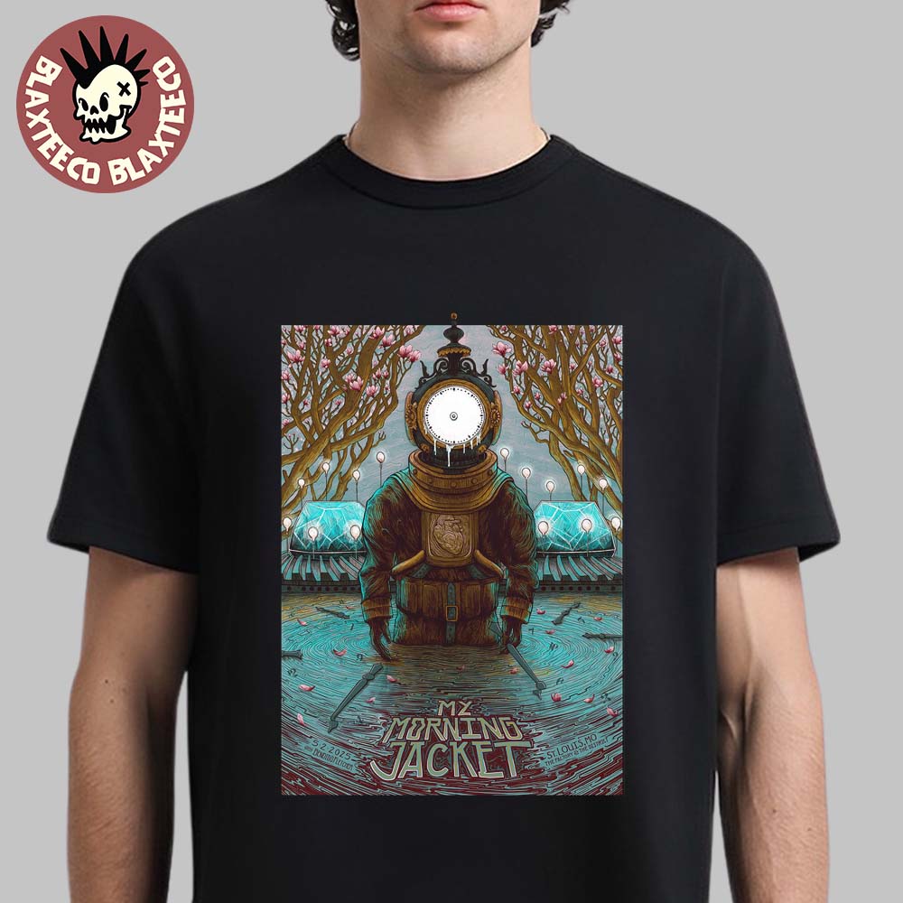 My Morning Jacket Poster For Show In St Louis Mo At The Factory At The District On May 2 2025 The Diver With Moll’s Clock En Lou Artwork Essentials T-shirt